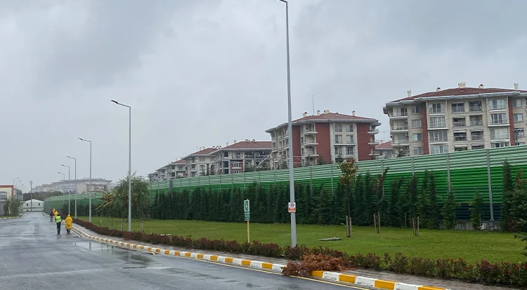 It is a project designed with an aluminum noise barrier between Istanbul Ataköy treatment facilities and Ataköy mansions on the railway route, and of which materials are produced to reduce railway noise. Usk-single sided aluminum sound barriers are manufactured from recycled materials.